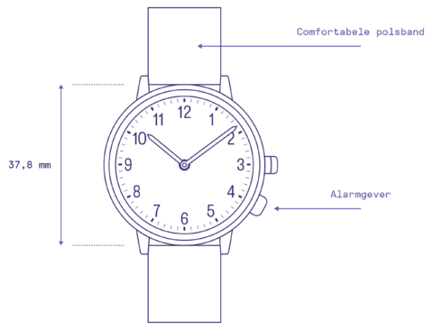 Elegant zorghorloge met verborgen alarmfunctie